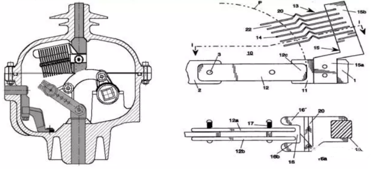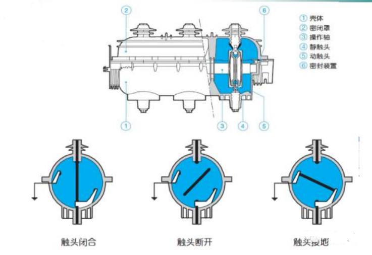 开关采用SF6气体灭弧,分闸时,触头断开瞬间产生电弧,每相触头上的灭弧栅把电弧拉长分段冷却,至电流过零时熄灭。