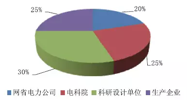 本着为电力行业开展效劳的准绳,本次调查网省电力公司占比20%,电科院占比25%,科研设计单位占比30%,消费企业占比25%。如图1 所示。