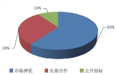 通过调研,所调查参与者单位对固体绝缘环网柜产品通过市场择优的占比60%;长期合作的占比30%;联盟无;公开招标的占比10%。具体如下图3所示。