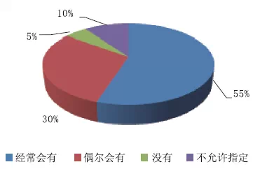 在参与者所接触的项目中,针对是否经常有指定厂家或品牌的问题,认为经?;嵊械恼急?/span>55%;偶尔会有的占比30%;没有的占比5%;不允许指定的占比10%。如图4所示。