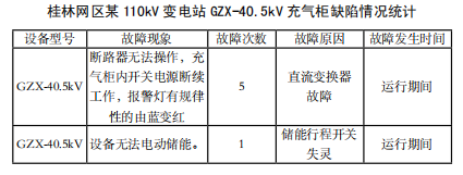 桂林网区某110kV变电站现有的GZX-40.5kV充气柜缺陷频发,根据运行值班人员提供的数据,该型号充气柜仅2012~2013期间发生缺陷次数及实际缺陷部位(表所示)。