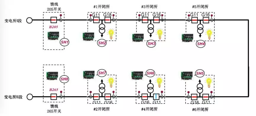 而通过在环网进线负荷开关柜布置T300的自愈方式,将能够实现更低成本的环网自愈。具体而言,在机场飞行区供电网络建设中,变电站两路出线带若干个开闭所组成一个环,变电站外出线隔离站及每个环网站节点各配置一台T300装置,以对等通讯方式实现“故障区段自动定位”、“故障区段自动隔离”、“非故障区段自动恢复供电”,使供电网络故障实现全自动化快速处理,约30秒内实现故障的快速切除以及恢复送电,达到世界一流的配电自动化水平。