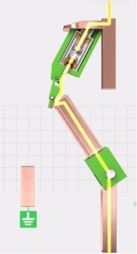 然后,电流通过处于闭合方位的真空灭弧室。接下来,在动触头的推动下,枢轴杆旋转并驱使真空灭弧室开断。