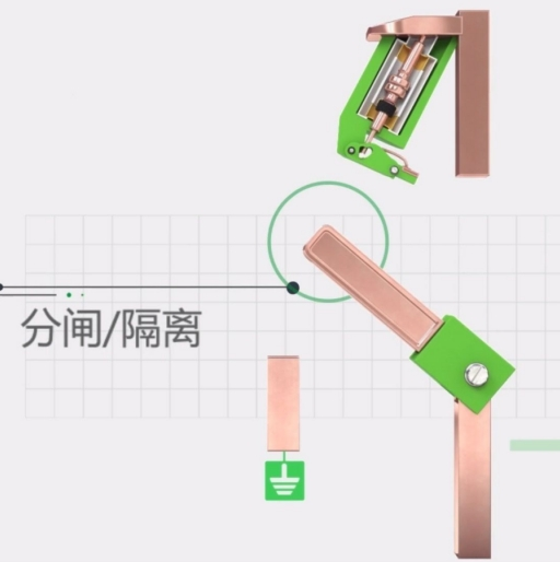 当电流开断结束后,动触头释放枢轴杆,并使其继续旋转至阻隔方位。在缓冲绷簧的效果下,枢轴杆返回初始方位,从而闭合真空灭弧室。