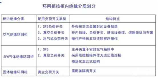 按绝缘结构分:空气绝缘、复合绝缘、SF6气体绝缘、固体绝缘环网箱按产品设计结构分:欧式环网箱和美式环网箱