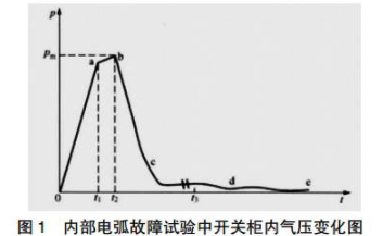 内部故障产生的破坏力与电弧产生的间隔容积,电弧电压,持续的时间,短路电流大小有关。在电弧产生后,柜体内的压力过程如图1所示,压力过程可以分为四个物理阶段风图1。
