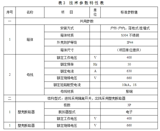 2.1低压电缆分支箱技术参数低压电缆分支箱技术参数见技术规范专用部分的技术参数特性表。