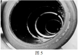 事端分支箱电缆终端所运用的硅脂密封功用不良,故障发生后,当拆拨其它两相电缆头时,由于硅脂出现干枯粘结(如图5),需求多人合力才调拨出,可见硅脂已不能起到润滑防潮与绝缘的效果,不能与电缆头同“呼吸”,弹性功用大为下降。