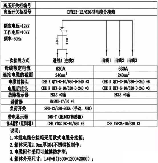 2)欧式电缆分支箱,它的首要特点是双向开门、运用穿墙套管作为衔接母排,具有长度小、电缆摆放清楚、三芯电缆不需大跨度交叉等显着长处。一般选用额定电流630A螺栓固定衔接式电缆接头。