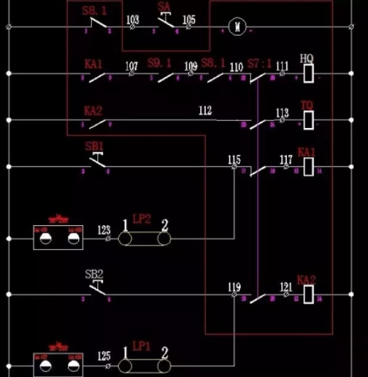 处理方法:如图所示,储能回路通过的点有限位辅佐触点S8.1,储能旋钮,电机。先打扫接线无松动,如不是接线松动再看储能旋钮是否是好的,旋转旋钮到接通情况,用万用表量通断看该点是否变为闭点。如还不能储能再看储能限位开关是否出色,在未储能情况下S8.1为常闭情况,如排查这几项电机仍不能动作则为电机问题,如该回路是直流电,检查接线是否为正负极对应电机的正负极,假设接反会导致电机反转,轻则二次侧熔芯烧毁,假设所用熔芯较大则电机初步超负荷运转发烫终究烧坏。