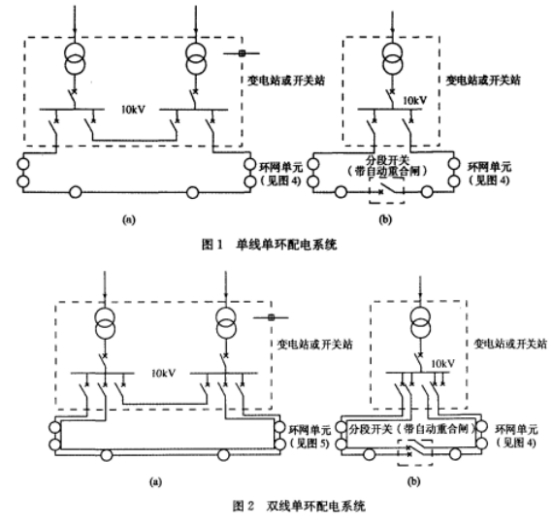 2006年1月正式实施的江苏省当地规范《江苏省工程制作规范》DGJ31/J14-2005中规矩,配所一般应优先选用环网单元(环网单元是指环网配电中配电所的系统接线)。可见环网配电是10kV配电系统的引荐系统和打开方向。