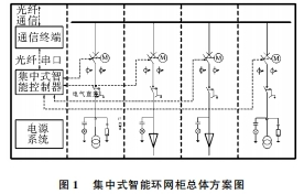 1集中式智能环网柜总体方案智能环网柜是运用现代的电力电子、主动化操控、传感丈量等技术将10kV负荷开关柜、断路器柜、熔断器柜、互感器与维护设备、通讯设备、计量表面等??樽楹显谝煌?,完毕电网一次设备与二次设备的超卓分离。集中式智能环网柜全体构造如图1所示。