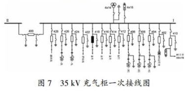 在某变电站结合新投设备初度停电检修时对35kV充气柜进行了例行实验,包含交流耐压实验、回路电阻查验和断路器机械特性查验。35 kV充气柜一次接线图如图7所示。