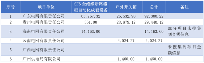 2020年度,南网范围共有6个省级电力公司有安排户外开关箱产品招标,通过各种招标方式安排了约8.0亿元SF6全绝缘断路器柜自动化成套设备需求和约6.1亿元户外开关箱需求。