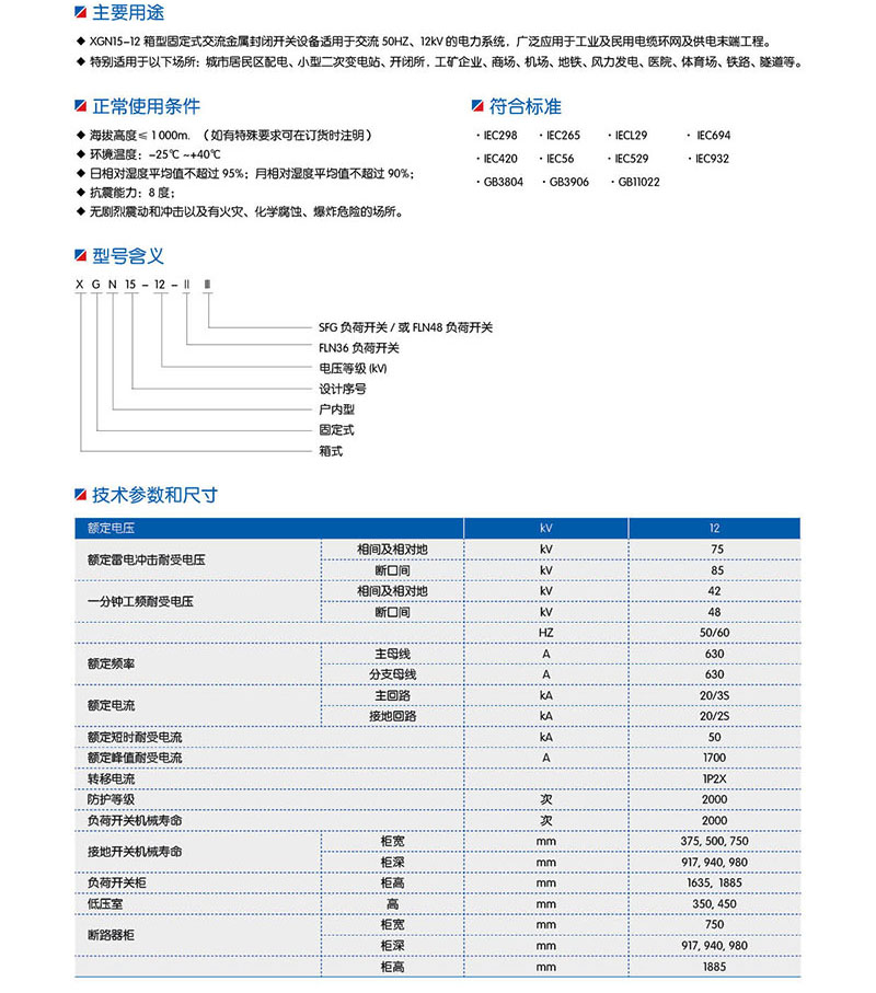 XGN66-12 户内箱型固定式金属封闭开关设备